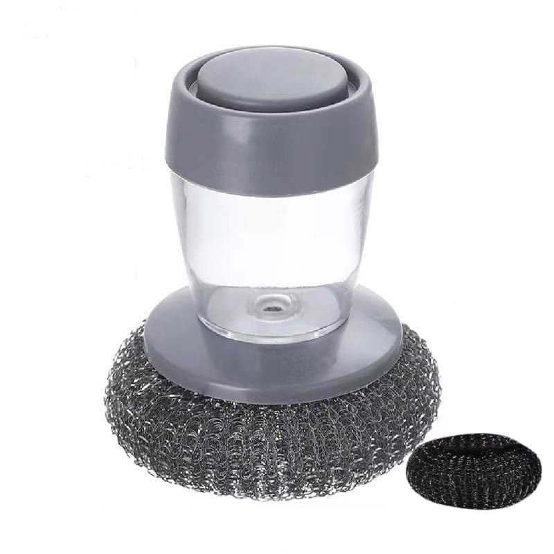 • Material: Push-type cleaning brush metal/PET material. humanized design. easy to clean. PET material will not harm hands. basins and surfaces. Used to clean kitchen stoves. washbasins and tiles.