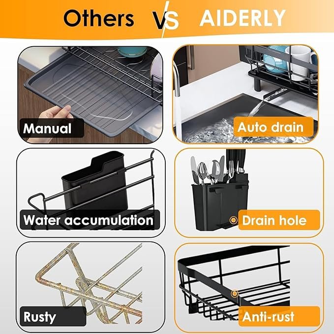 Espacios separados para platos, cuencos, tazas, cubiertos y utensilios