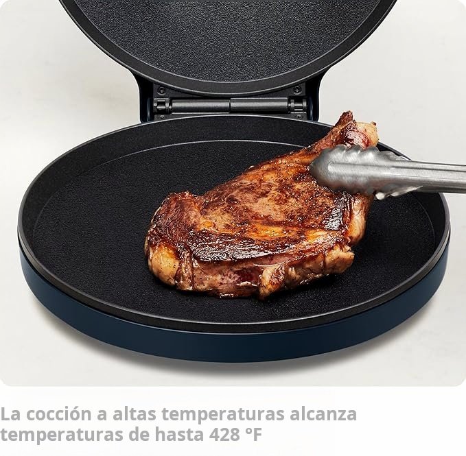 Placas superior e inferior con calentamiento rápido hasta 428°F (220°C) para una cocción uniforme y bases crujientes en minutos.