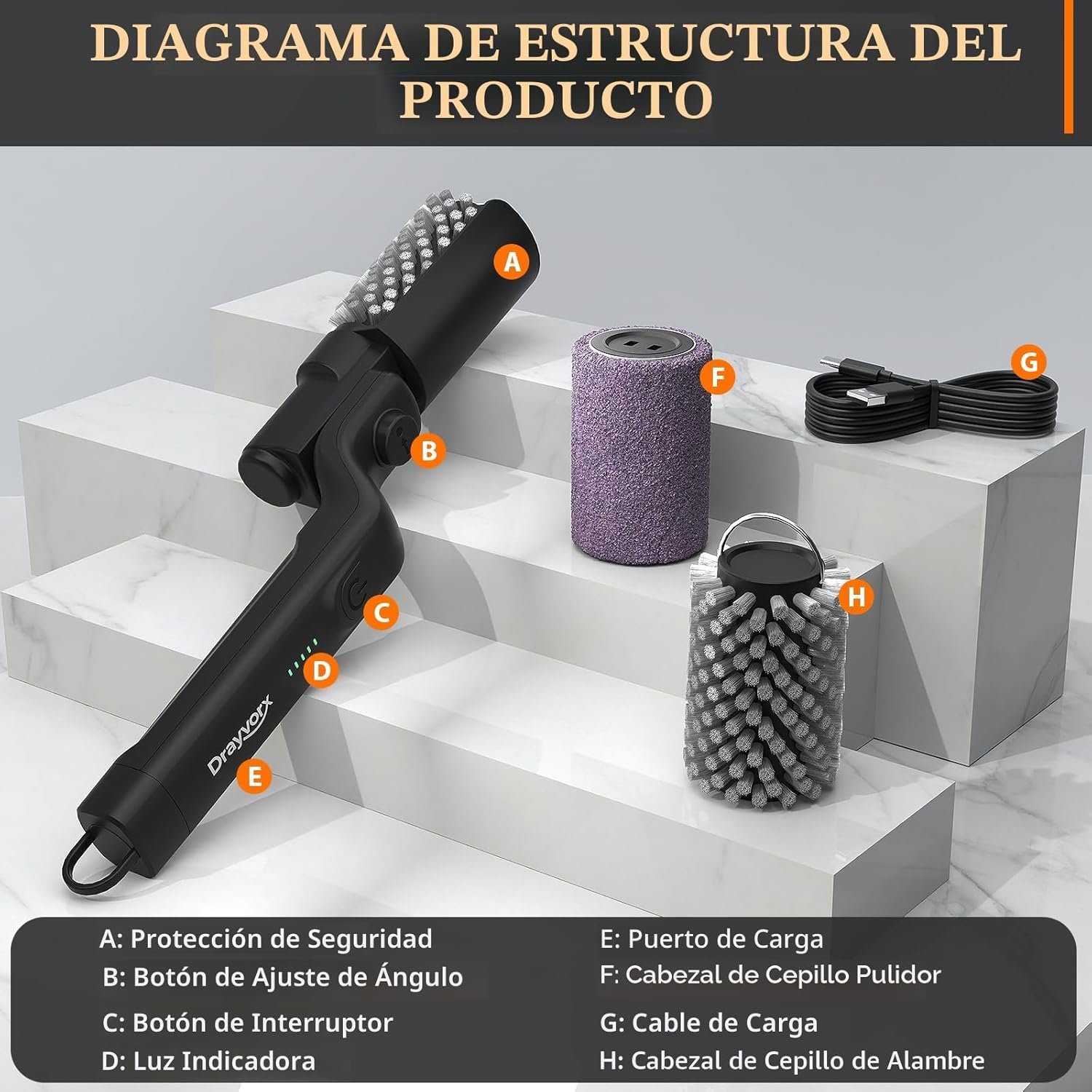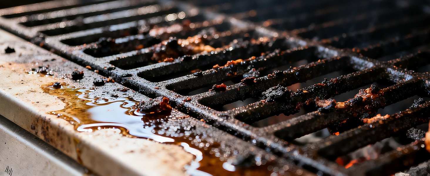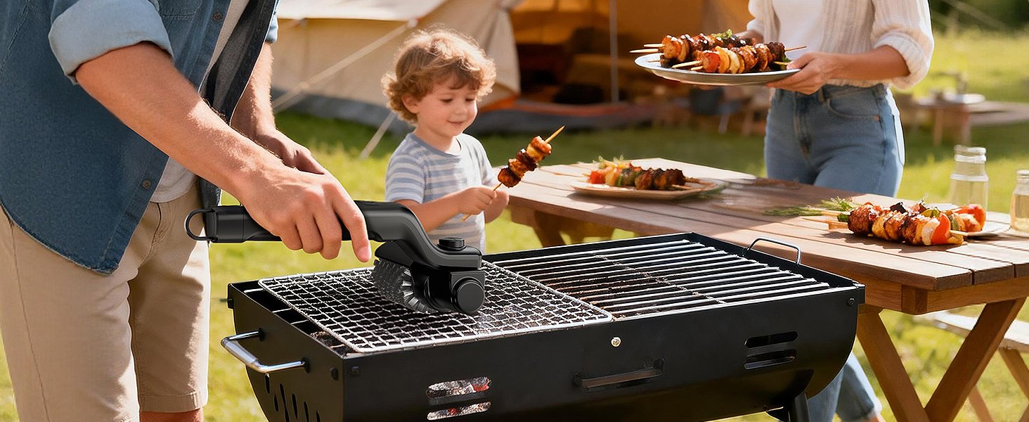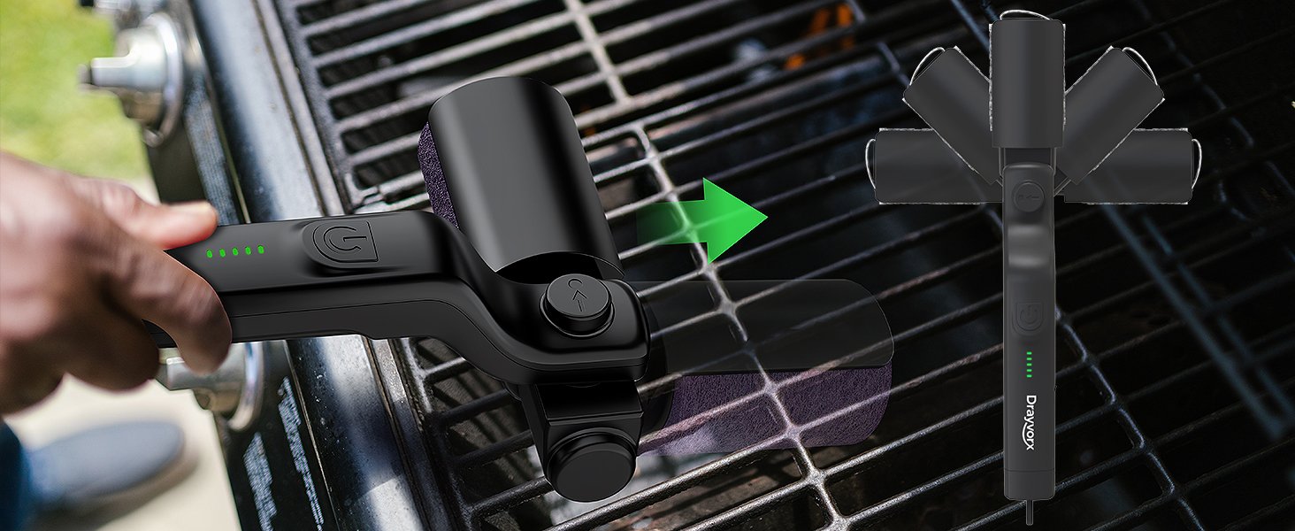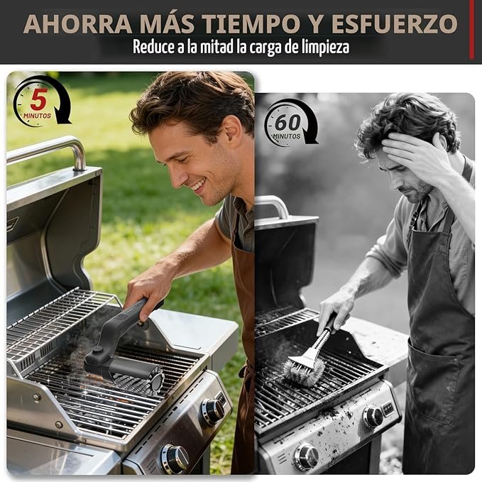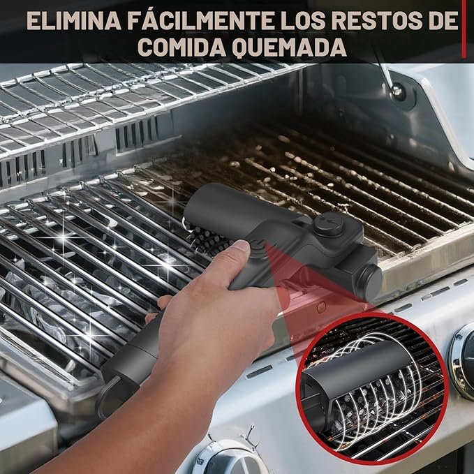Motor eléctrico que elimina grasa y residuos quemados de forma rápida en parrillas.