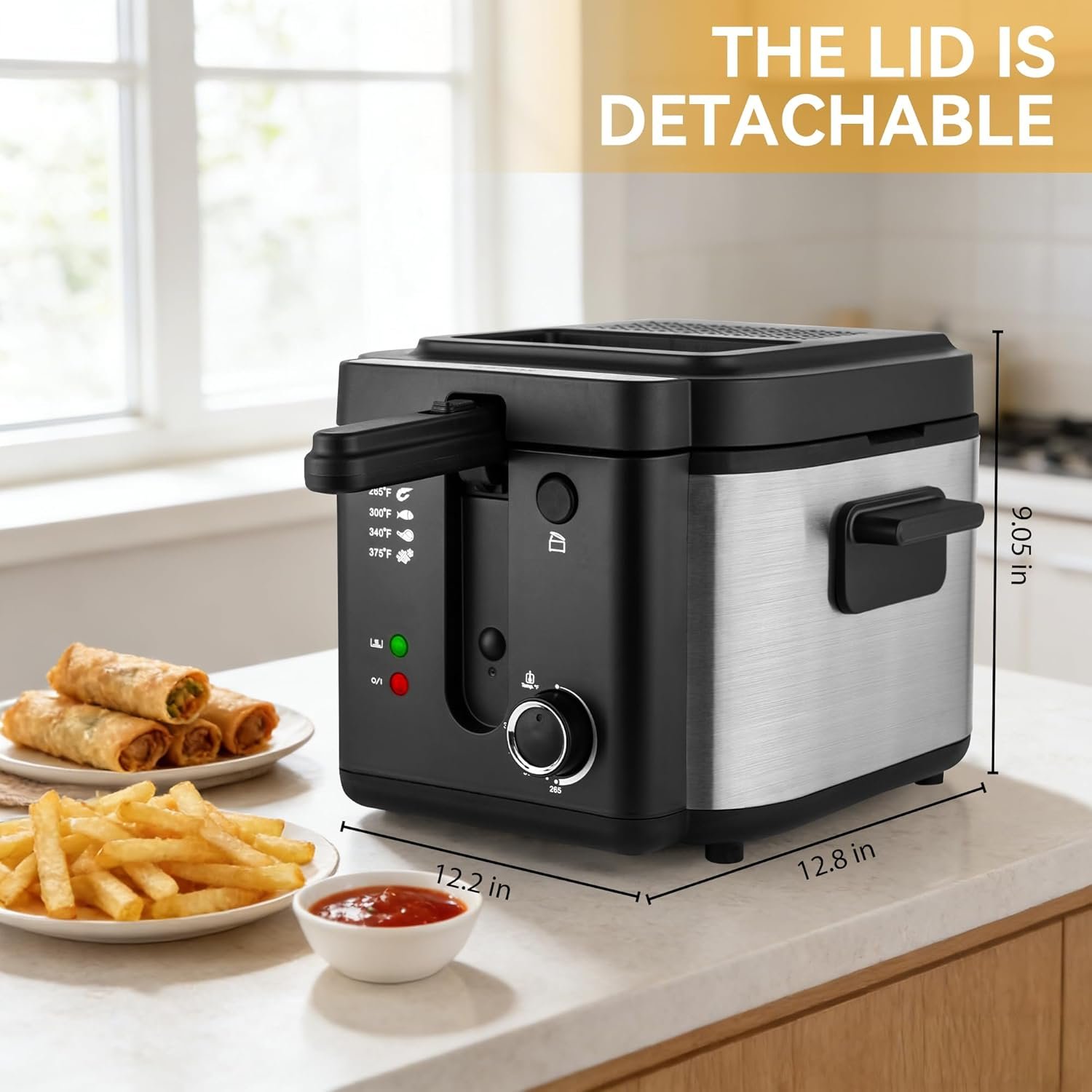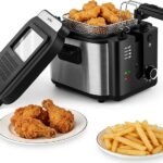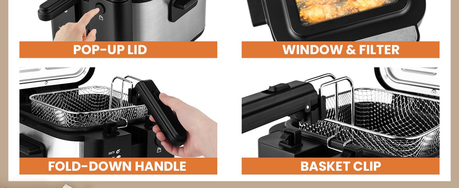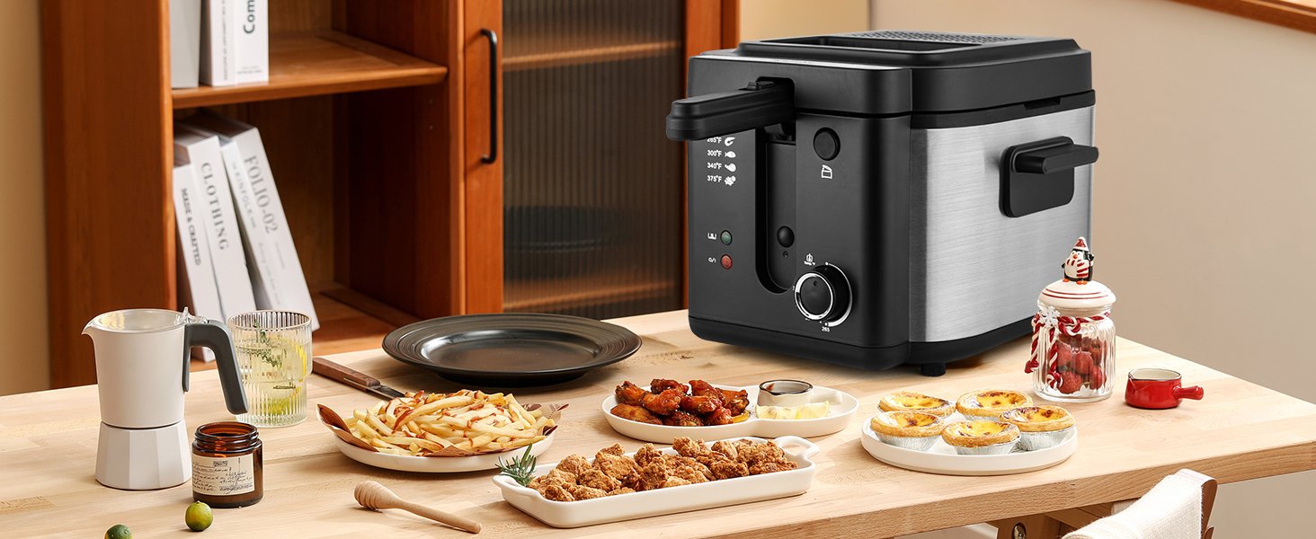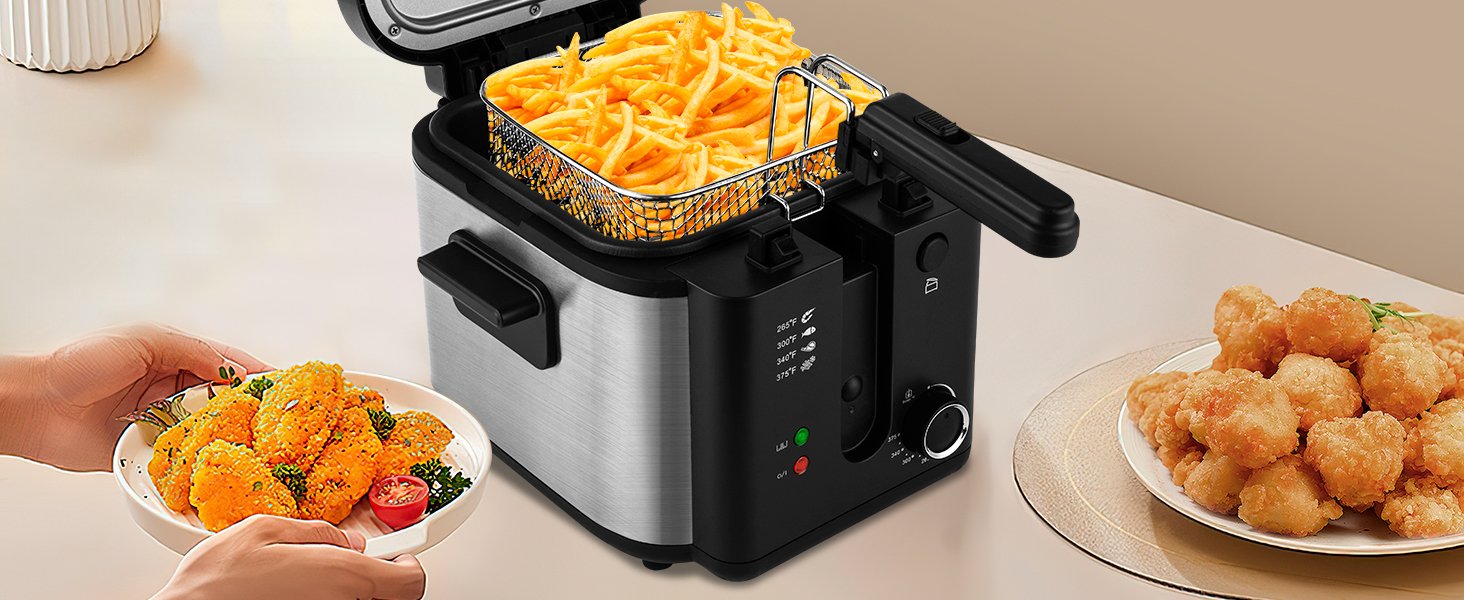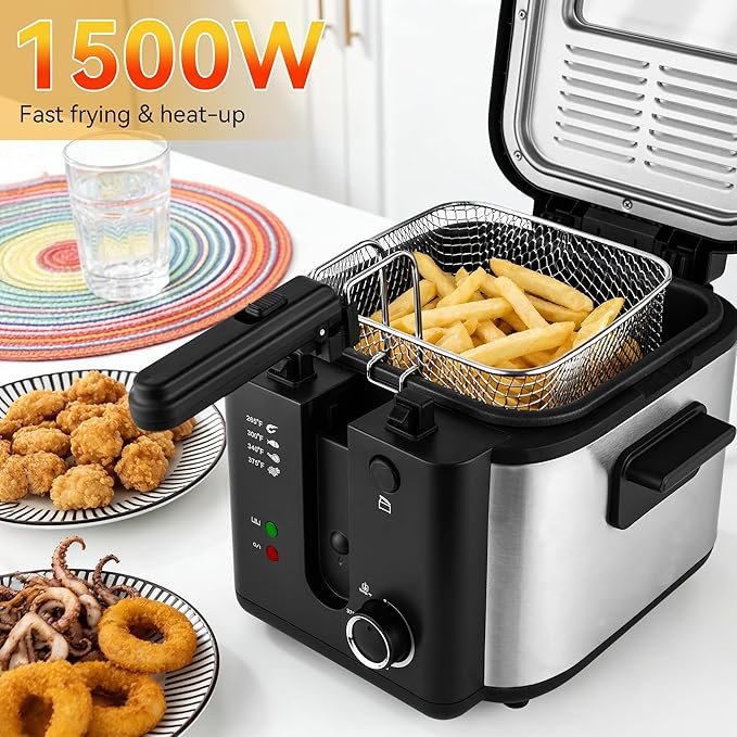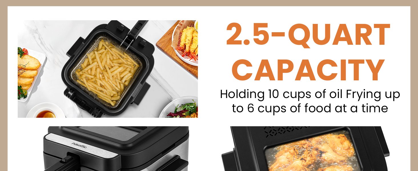 Freidora eléctrica Pukomc con cesta, olla de freír con temperatura ajustable para uso doméstico, tapa extraíble y olla interior antiadherente de 2.5L fácil de limpiar