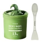 P.CALM Mascarilla Facial de Burbujas de Albahaca Sagrada con Brocha, Limpieza Profunda de Poros y Puntos Negros, Arcilla Coreana con Agua Carbonatada