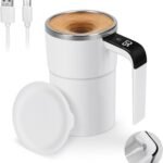 Self Stirring Mug, Auto Magnetic Coffee Mug with LED Display Temperature, Rechargeable Automatic Stirring Cup, 12oz Self Mixing Cup with Lid To Stir Coffee Mixed Milk at Desk Use