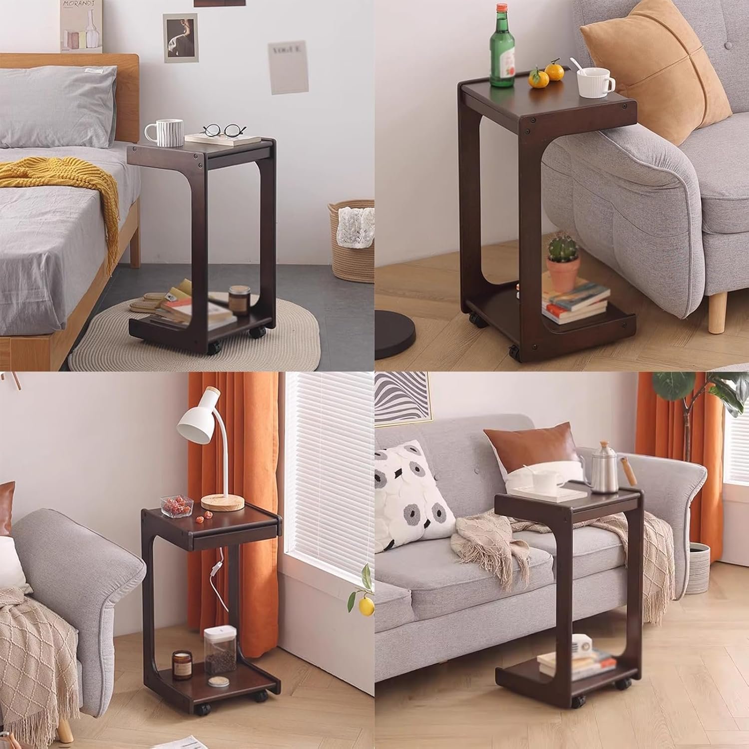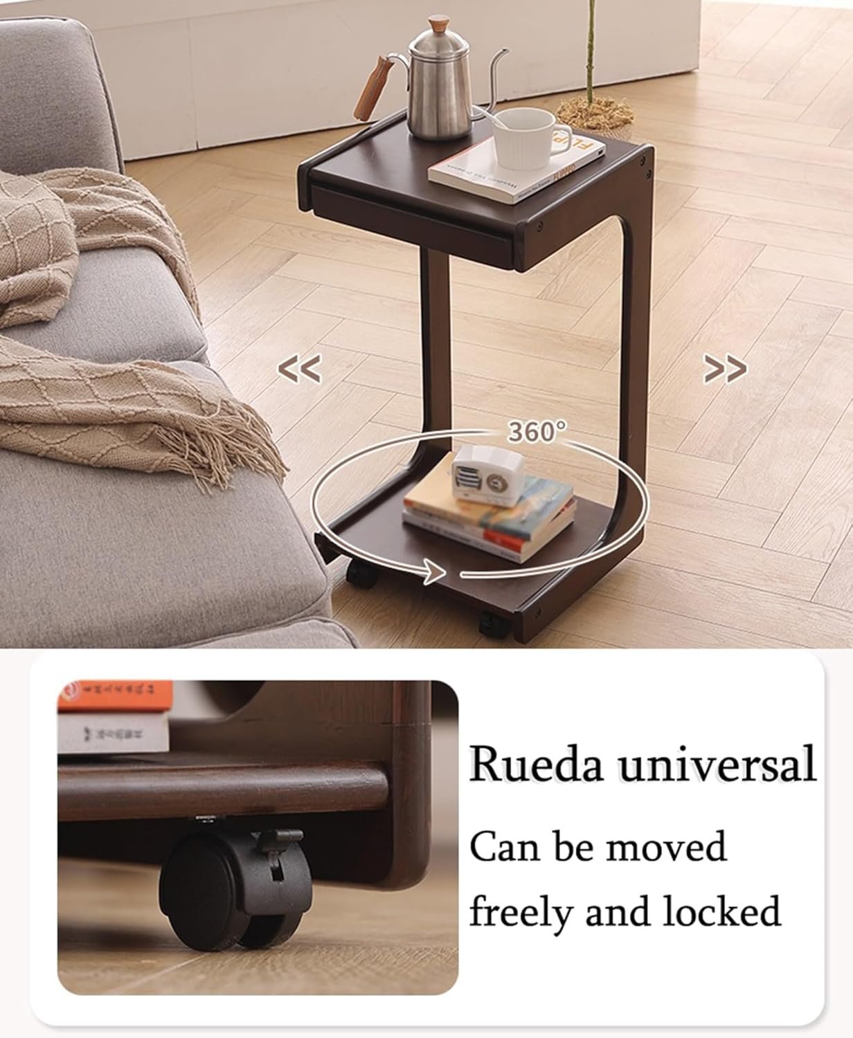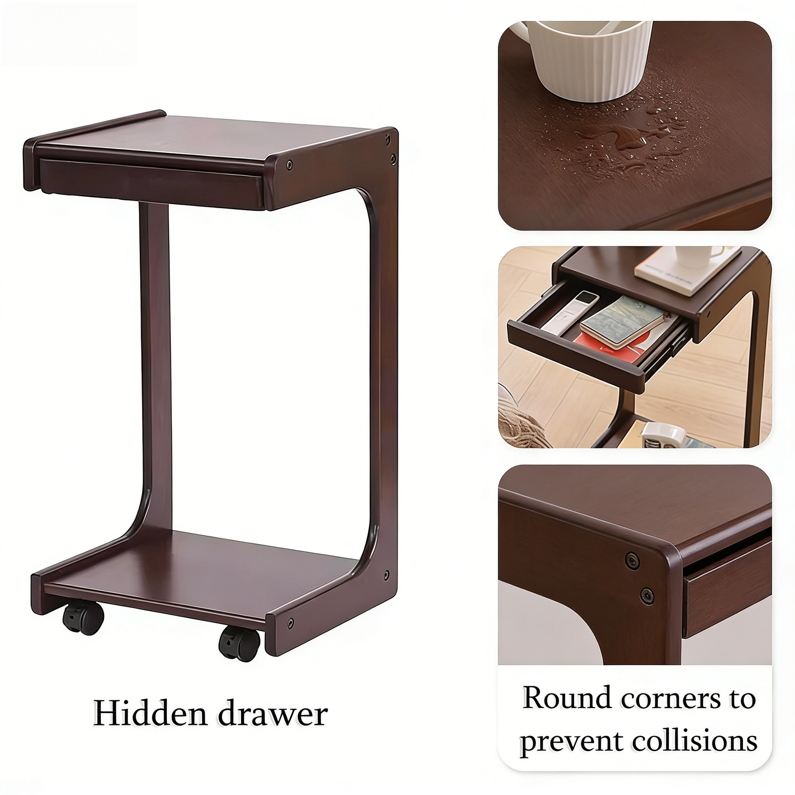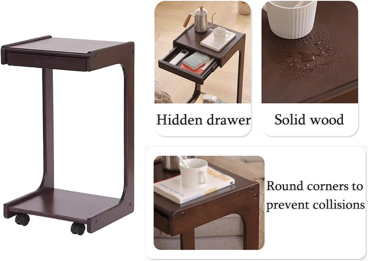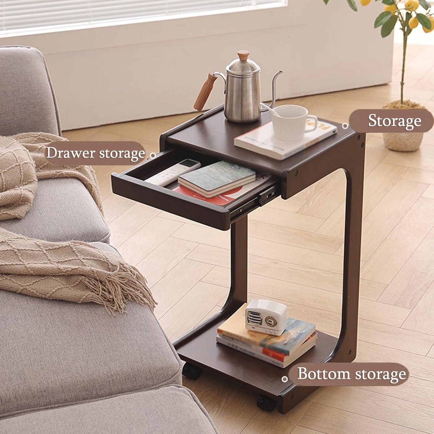 Side Table with Drawer, Rolling Nightstand with Storage Shelf, Easy Assembly for Bedroom & Living Room