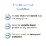 Rigorously tested to meet an IP67 rating, YeahBox is waterproof and dustproof inside and out. Dunk it in water, and it’ll keep on playing. It even floats. The speaker is also protected against dust, so you don’t need to worry if it gets sandy at the beach.