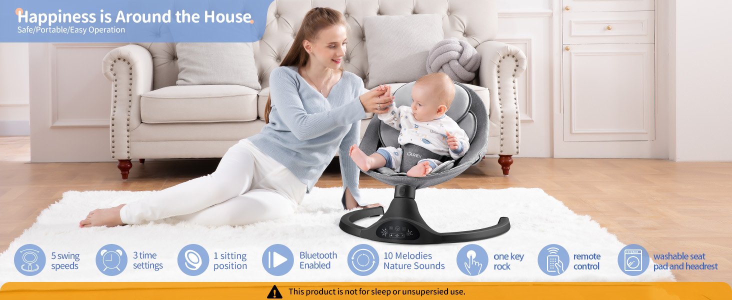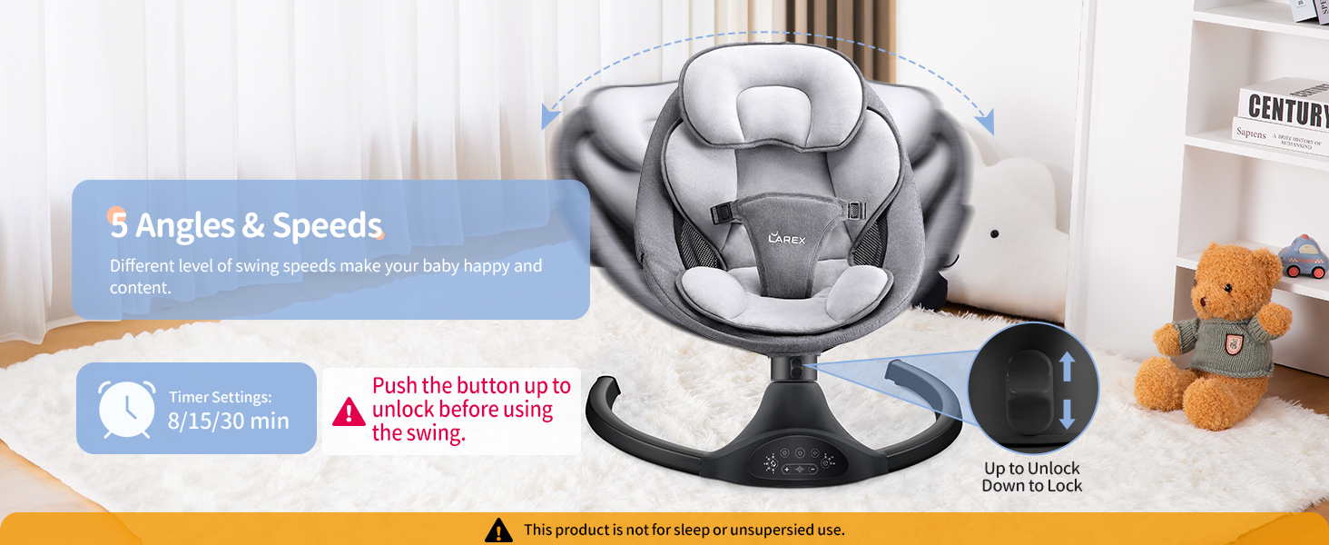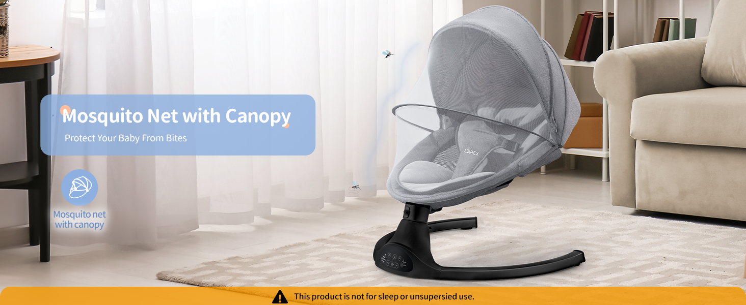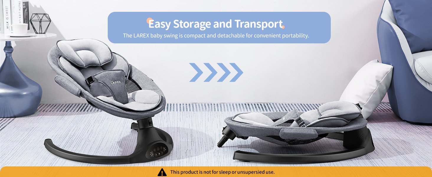 LAREX Columpio de bebé eléctrico portátil para recién nacidos, niños pequeños, 5 velocidades de balanceo con control remoto, 10 melodías preestablecidas y Bluetooth, 0-6 meses, máximo 20 libras