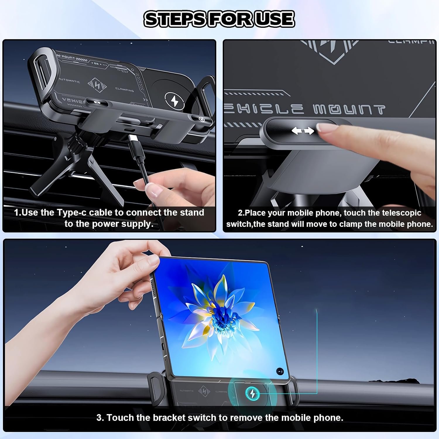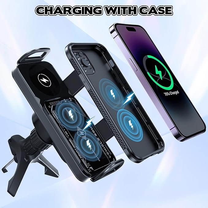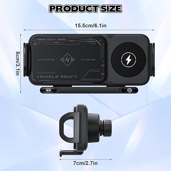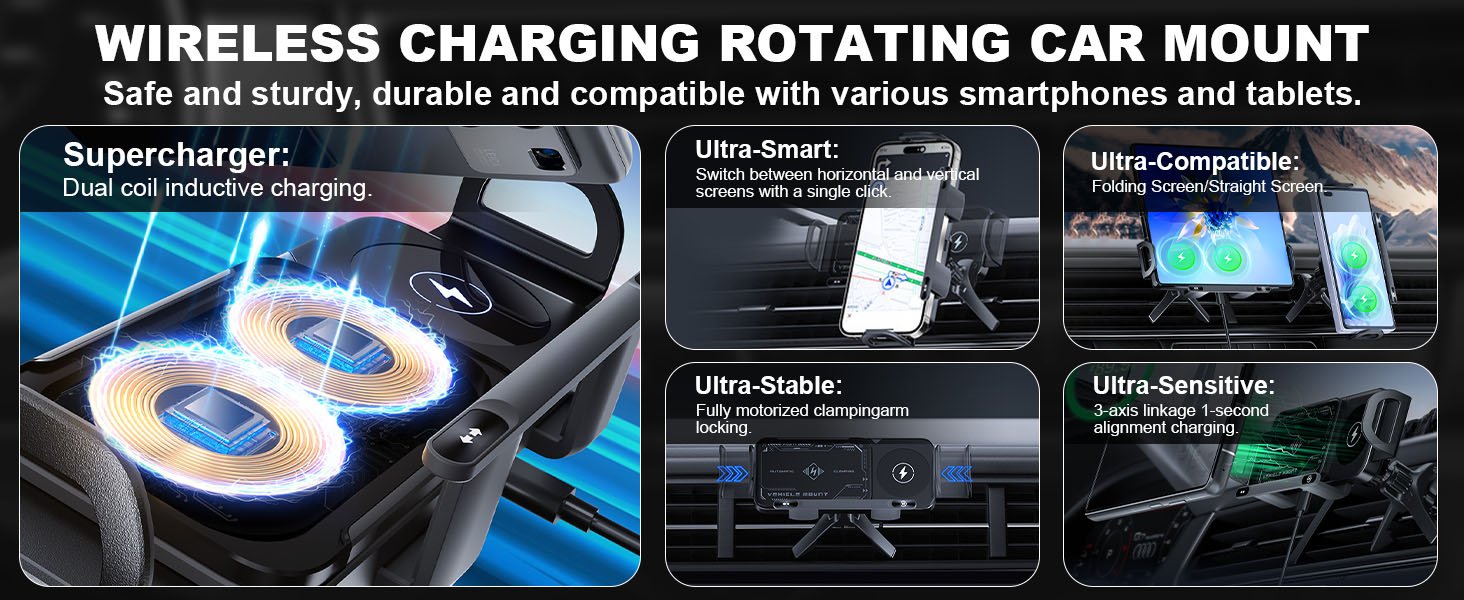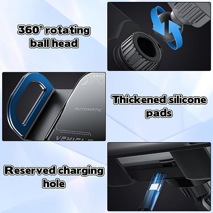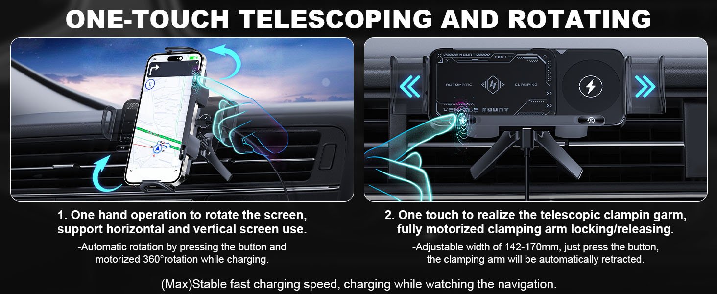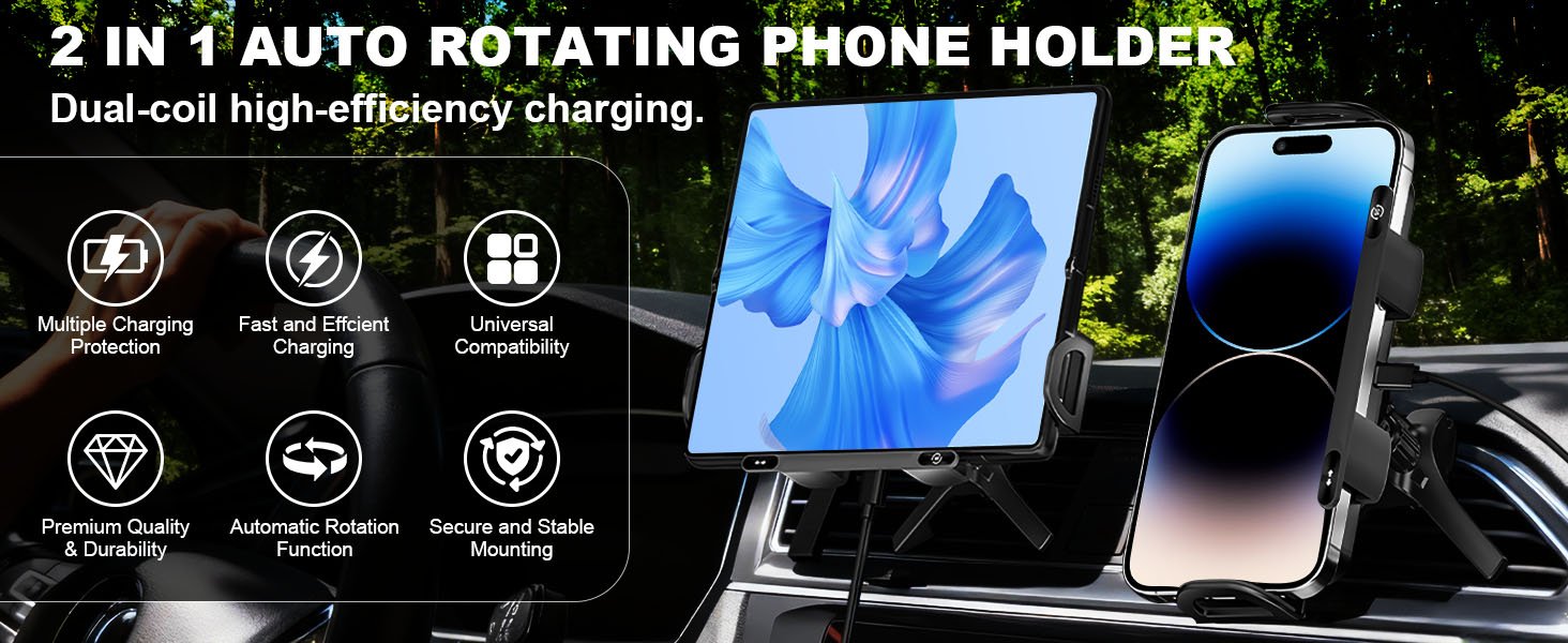 OneNine Soporte inteligente para teléfono móvil/almohadilla, 2 en 1, soporte para teléfono giratorio automático, cargador de automóvil, soporte de teléfono de carga rápida, soporte giratorio para teléfono de ventilación de automóvil para teléfono inteligente/almohadilla/plegable