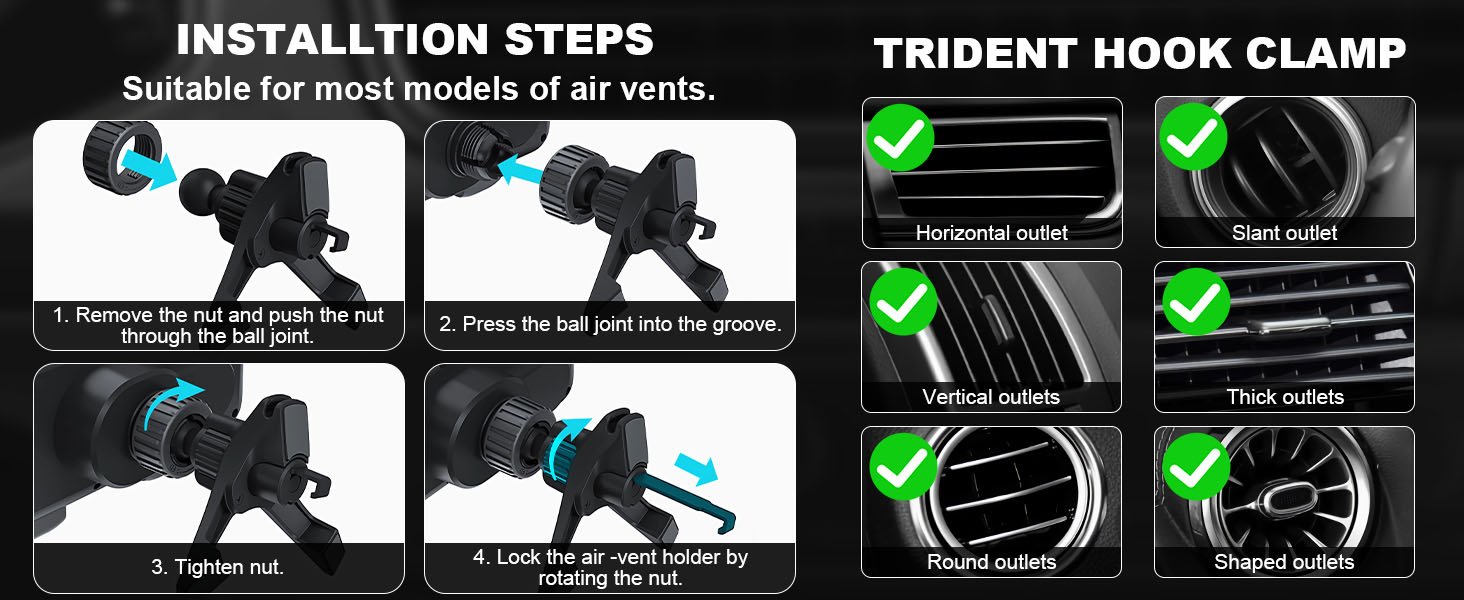 Se adapta a la mayoría de rejillas de ventilación y a distintos tamaños de dispositivos.