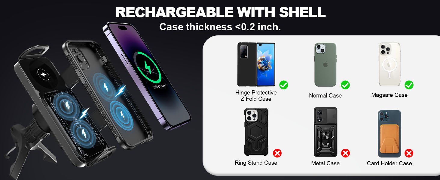 Doble bobina para carga eficiente y compatible con la mayoría de smartphones.